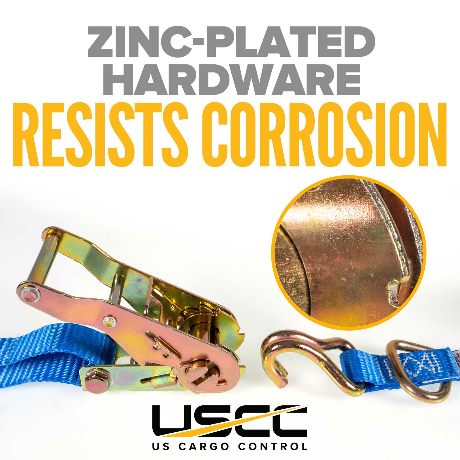 1" x 10' Ratchet Strap w/ J-Hook & D-Ring