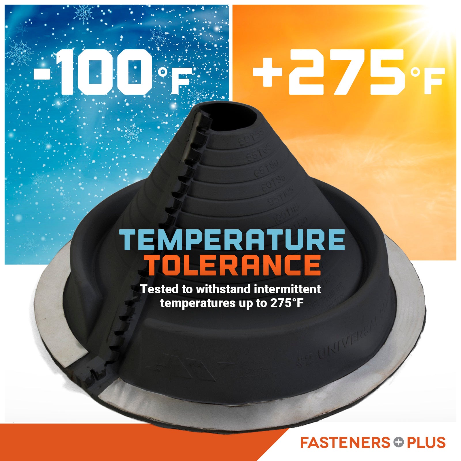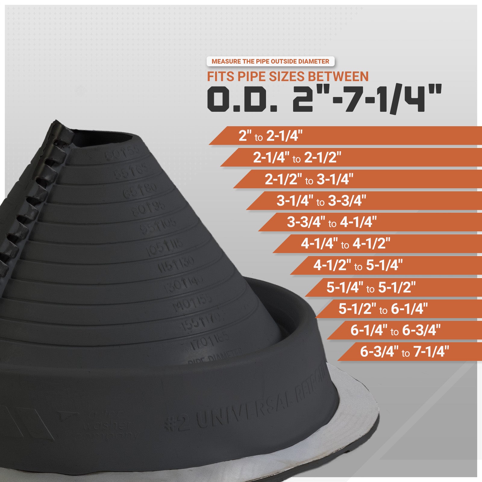#2 Roofjack Round Retrofit EPDM Pipe Flashing Boot for Metal Roof, Black