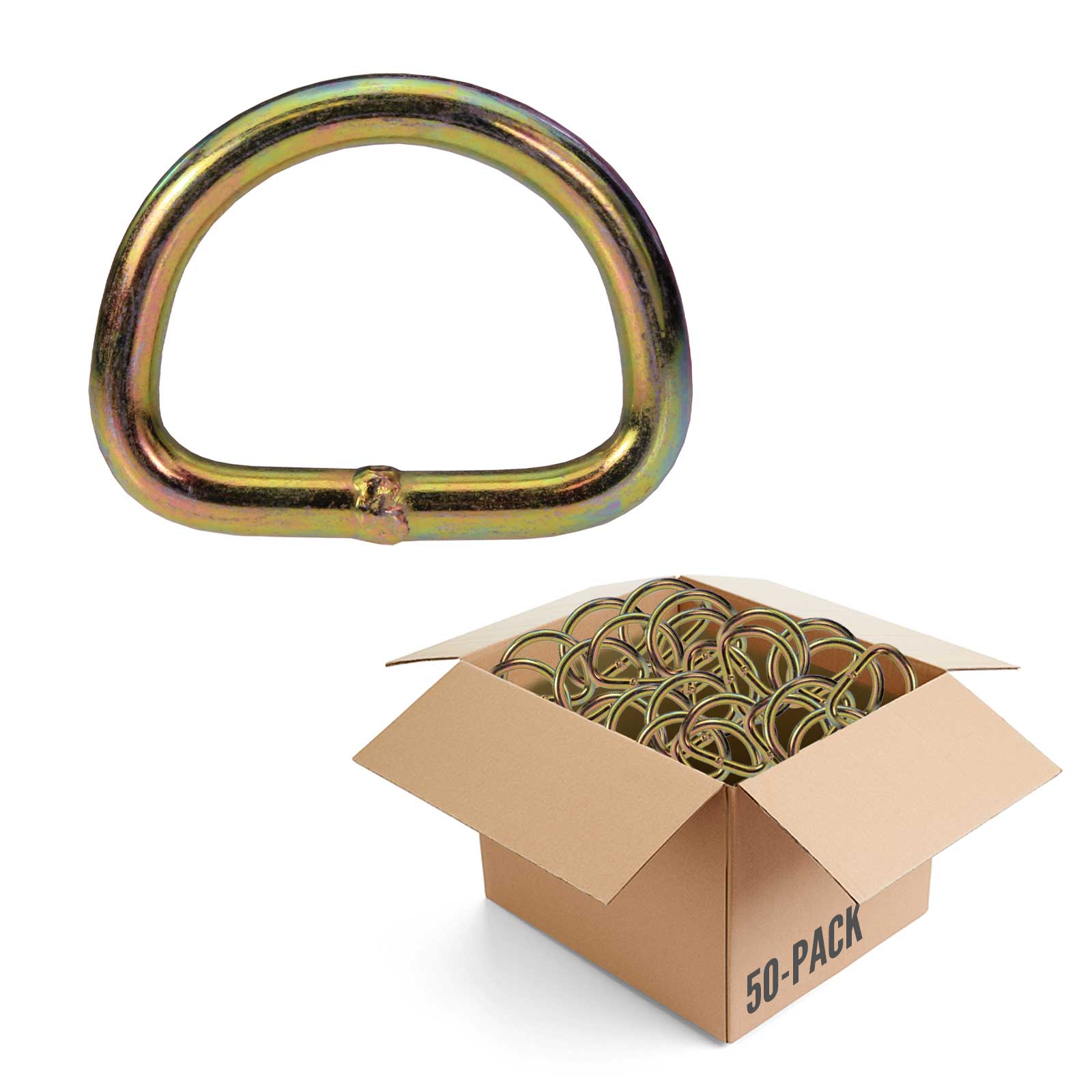 2" Yellow Zinc D-Ring - 10,000 lbs. BS - 50 Pack