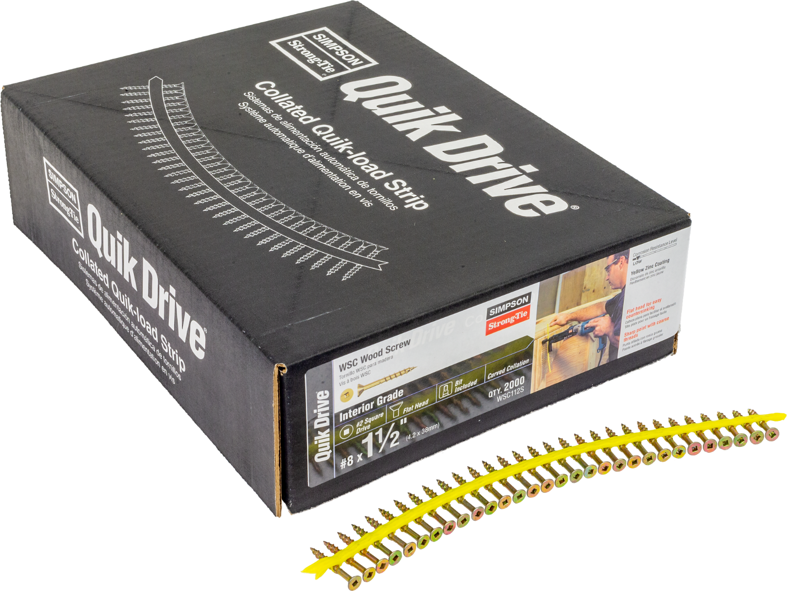 #8 x 1-1/2" Quik Drive WSC Wood Collated Screws, Yellow Zinc, Pkg 2000