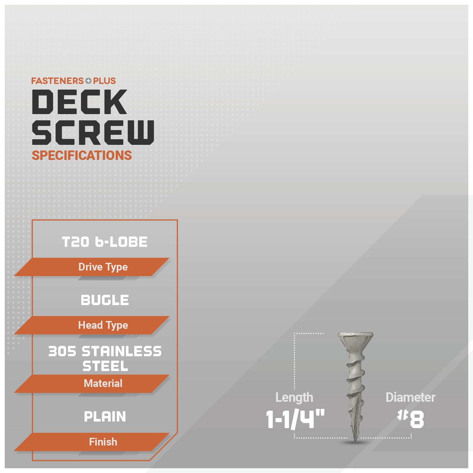 #8 x 1-1/4" Daggerz T20 Flat Head Deck Screw - 305 Stainless Steel, Pkg. 7,500