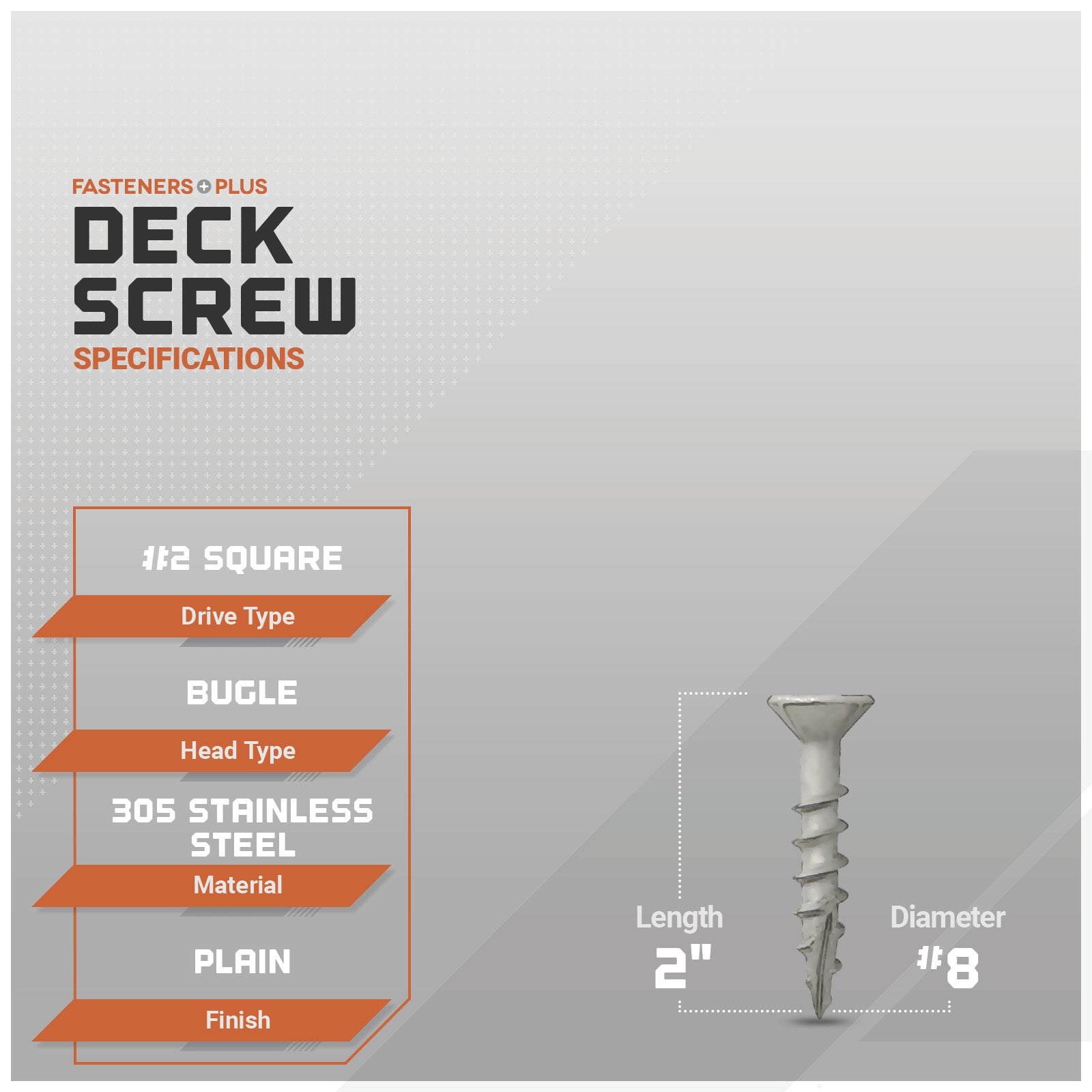 #8 x 2" Daggerz #2 Square Flat Head Deck Screw - 305 Stainless Steel, Pkg. 3,000